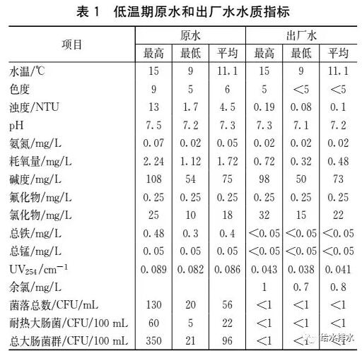 自2016年6月30日建成投產(chǎn),水廠運(yùn)行可靠,處理效果良好,出廠水水質(zhì)優(yōu)于國家標(biāo)準(zhǔn),在低溫低濁期,最高出廠水濁度穩(wěn)定低于0.19NTU、耗氧量小于0.72mg/L、色度不高于5,具體水質(zhì)如表1所示。